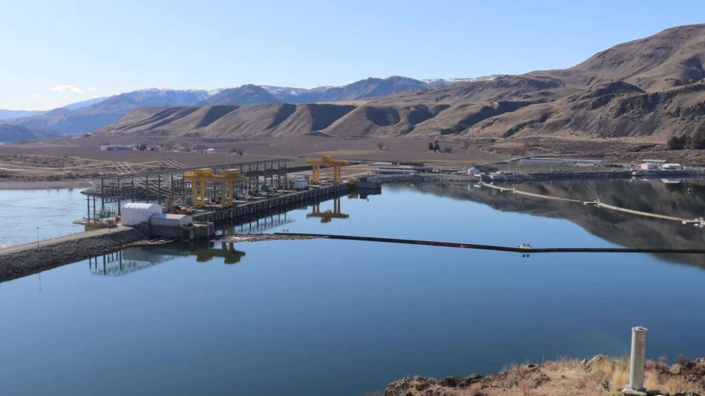 East side, upstream of Wells Dam hydro-electric facility. (Image: Douglas County PUD)