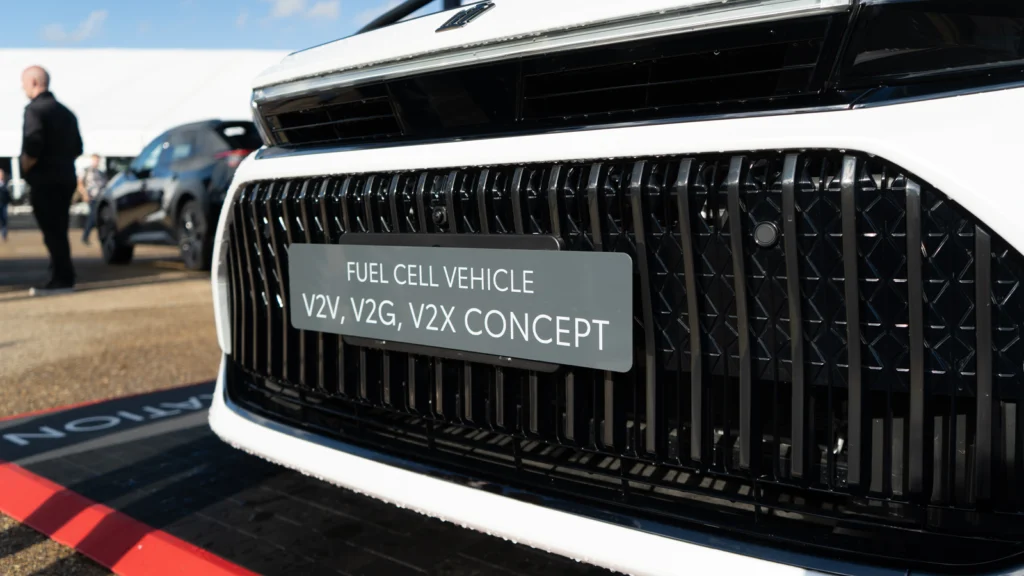 What from the outside looks like a very agreeable executive saloon, the company was showing off a 9kW mobile power station on four wheels – showing that hydrogen vehicles could have a strong role to play in energy resilience and commercial power supply.