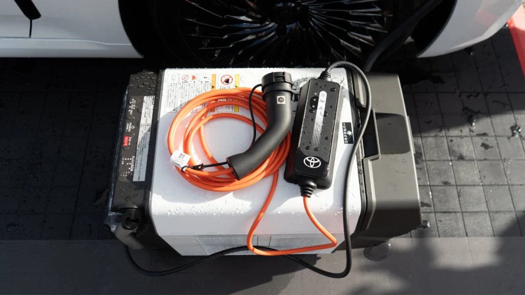 The background is straightforward enough. For years Toyota has offered PTO capability on hybrids in Japan, allowing owners to idle the car and use its onboard generator to provide electricity in the event of an outage. It’s slightly crude but effective in a country plagued by weather related grid outages.