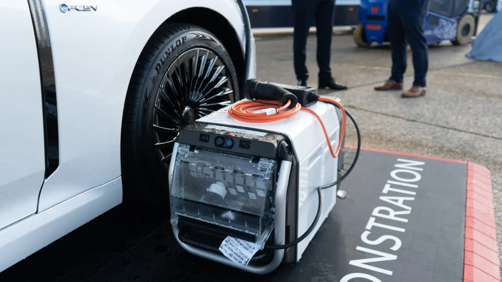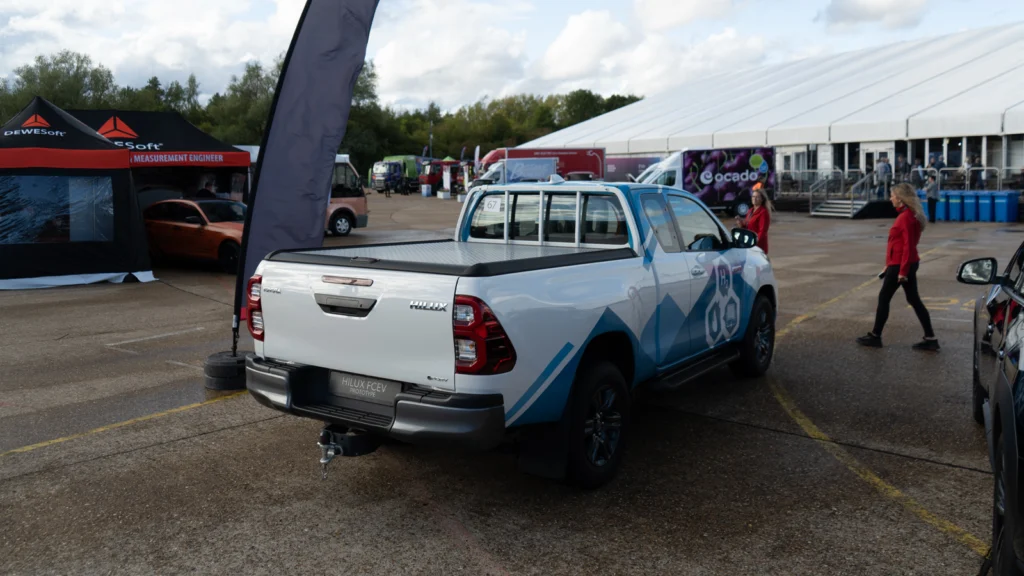The commercial applications are easy to imagine. A hydrogen Hilux – like the one also shown at Cenex – could be dispatched to a construction site to run lighting, tools and welfare cabins before the mains is connected, or to an emergency response zone to power equipment without the noise and fumes of a diesel generator.